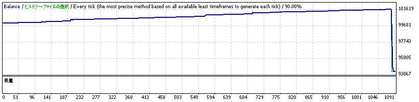 かなりよくなりました。資産曲線も破産を示す箇所は無いですが、角のようにとがった箇所がいくつかあります。