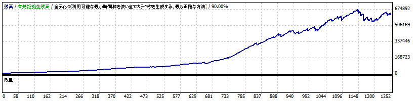 最大利益から50ドル損失が出た場合に、50ドルを回復させるまで勝率の良いロジックに自動変更し、ロット数を増加させます。
